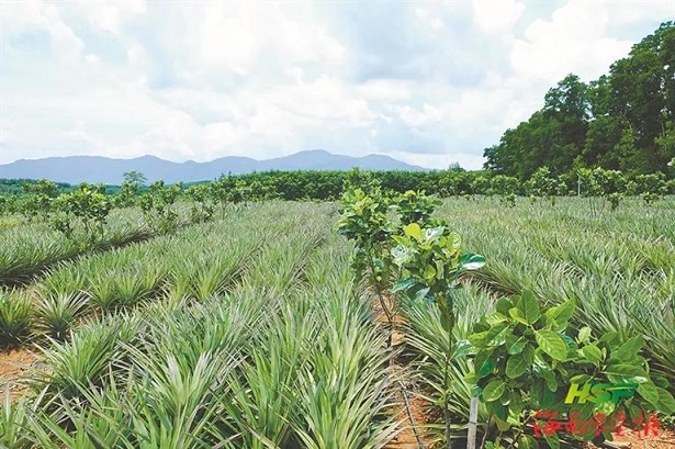 suncitygroup太阳集团龙江分公司在波罗蜜中间种凤梨。王明月 摄