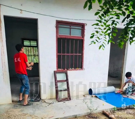 八一分公司龙山派驻组安排工人修葺外来胶工住房。高圆圆 摄