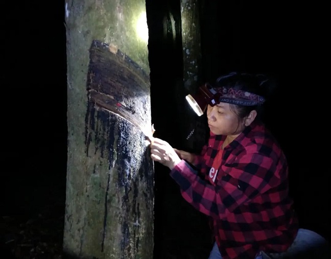 抓干胶,促生产,只为稳定职工队伍。今年开割以来,黄英梅一直都顶岗割胶。为打消胶工因疫情影响带来的心理压力,在抓好日常防疫工作下,黄英梅坚持每天都正常割胶,从不随意丢刀,打消了胶工们的思想顾虑。其他队管理员也坚持每天上林段抓干胶生产,做胶工思想工作,稳定胶工队伍。